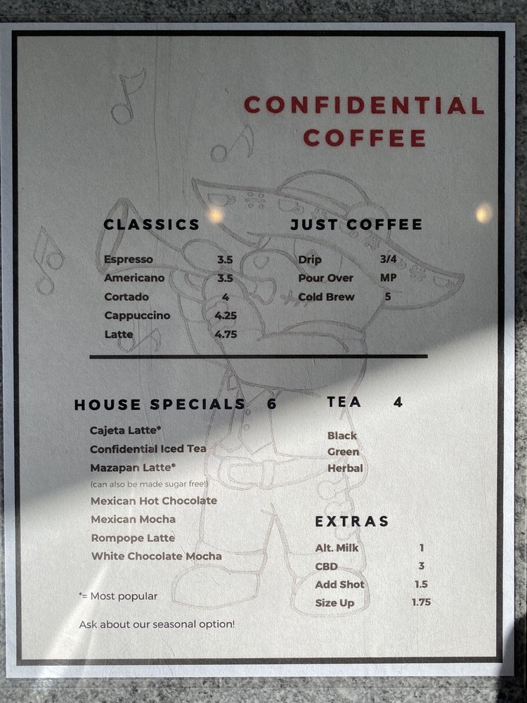 Whether you're here to work or unwind, Confidential Coffee invites you to enjoy a memorable experience.