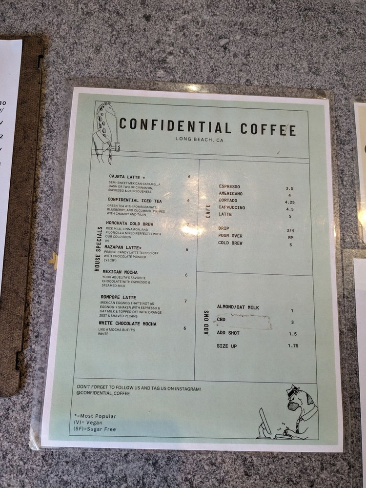 Confidential Coffee, located at 137 W 6th St, Long Beach, CA, is a vibrant, community-driven cafe that seamlessly combines comfort with a cozy atmosphere. This Latinx- and women-owned gem offers a delightful menu designed for all coffee enthusiasts and casual visitors alike. Highlights include their refreshing horchata latte and innovative mazapán iced latte, praised by patrons for their unique, satisfying flavors.